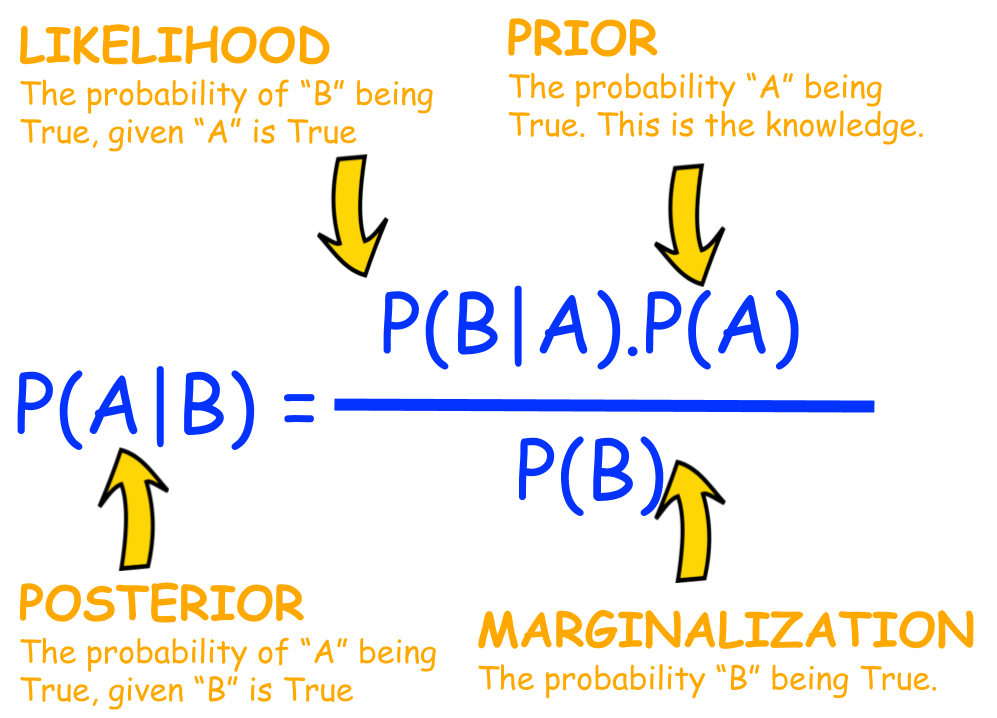 Bayes theorem is named after Thomas Bayes. It's essentially the probability of something happening, like an event or condition being met. For example, if I give you a fruit that's yellow, elongated with potassium - what's the probability it's a banana?