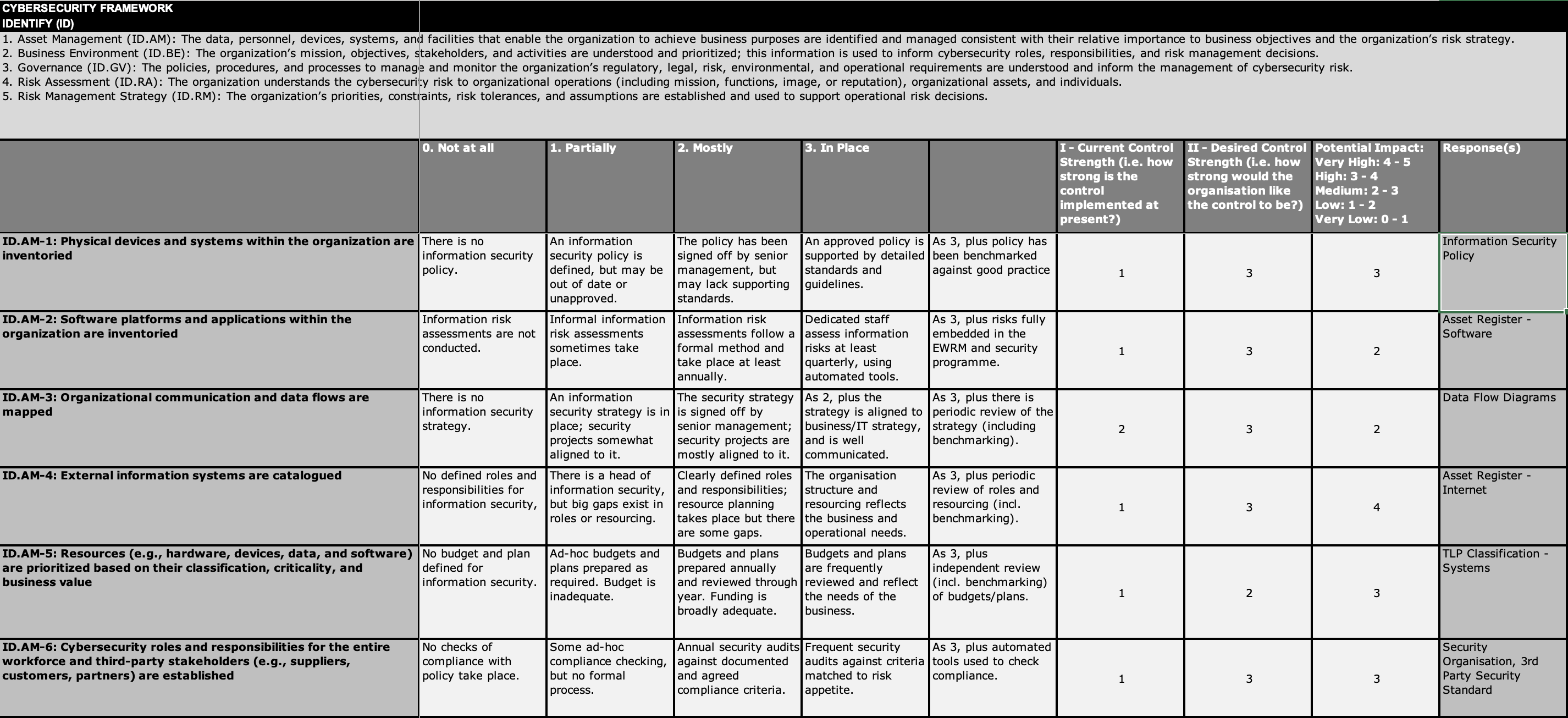 - Perform a gap-assessment against the framework - break the framework down into a collection of requirements. Assess the current status against the desired maturity - the criticality - and identify the key tactical activities to bridge the gap.