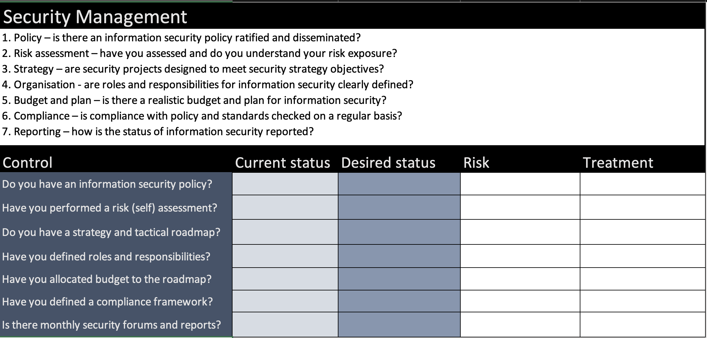 Once you have your framework, you can naturally progress to a gap assessment. Essentially you need to assess your current maturity against your desired maturity.