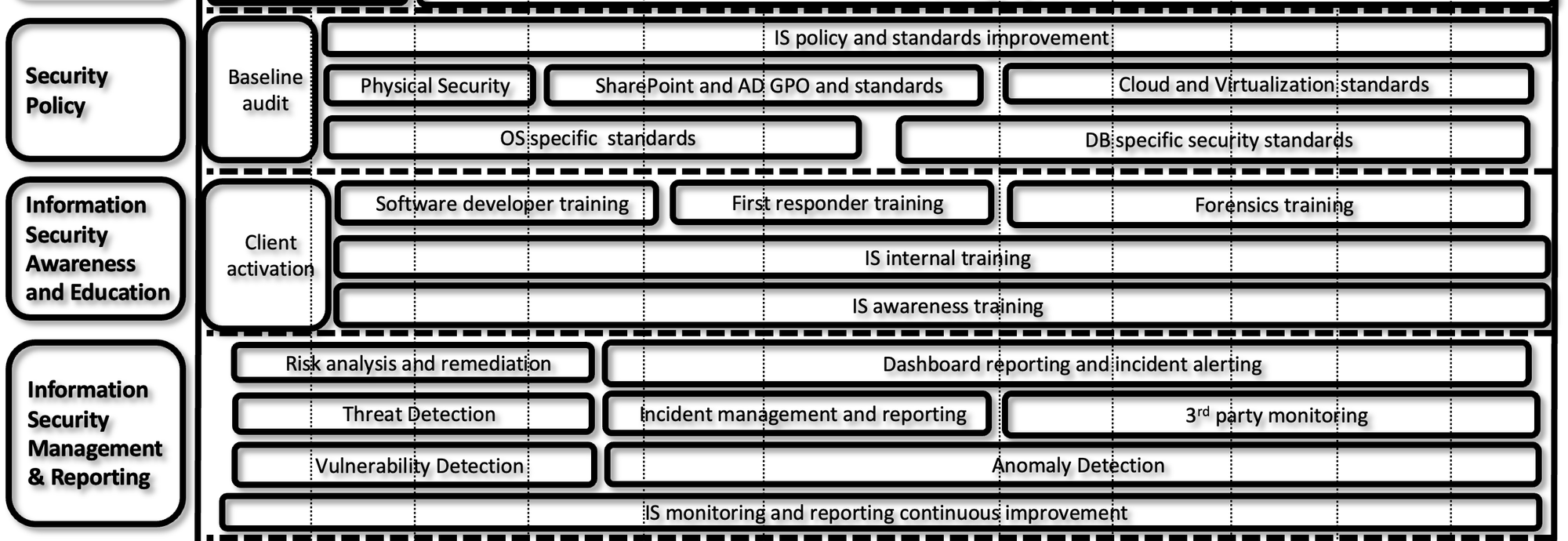 Once you have both current risk exposures and future strategic objectives, you can break it down into a risk-based tactical roadmap. A roadmap (extract) is shown below.