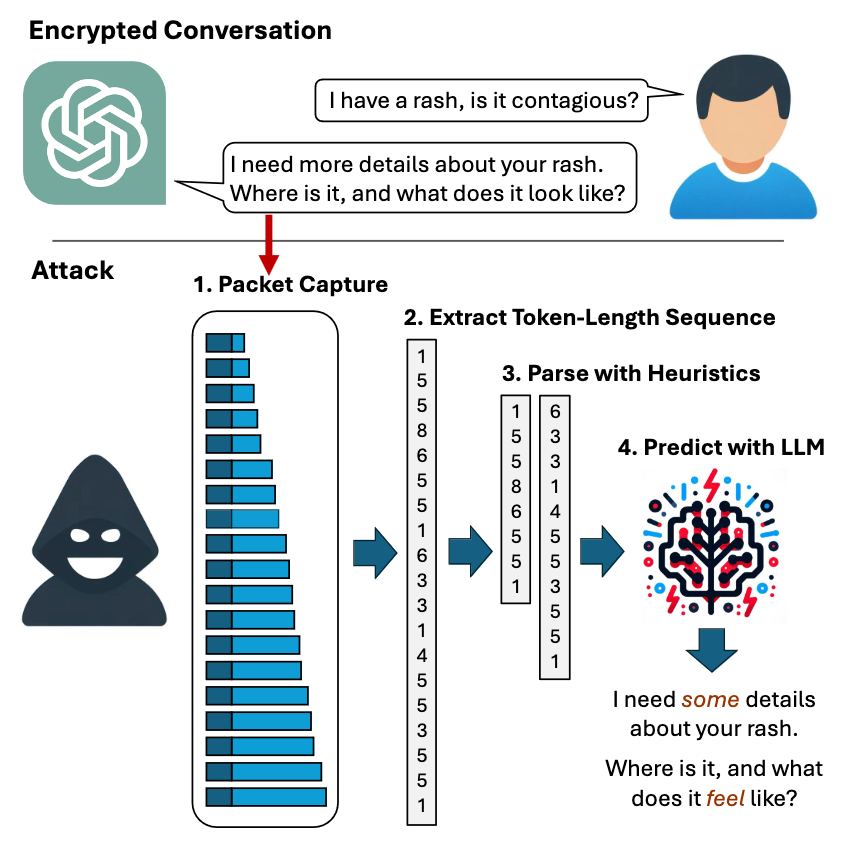 Ooohhh,... the irony! An LLM (large language model) platform is the exact tool that would be really good at predicting what the plaintext equivalent would be. Which is exactly what the researchers used to perform their Token Inference Attack (step 4).